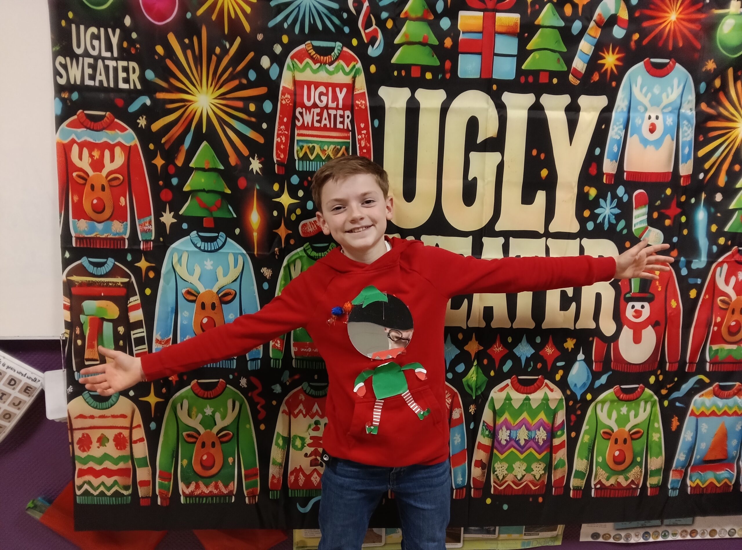 Le collège a vibré au rythme du "Ugly Christmas Sweater Day" le vendredi 19 décembre, une tradition annuelle qui égaye les couloirs. Élèves et équipe éducative ont enfilé leurs pulls de Noël les plus excentriques pour une journée pleine de rires et de joie festive. Cette journée dédiée au pull de Noël – le plus kitsch possible ! – invite à célébrer les fêtes avec créativité et bonne humeur. Tout le monde a joué le jeu, transformant l'établissement en défilé haut en couleur et en paillettes. Voici les lauréats après délibérations des élèves de 4ème LCE :