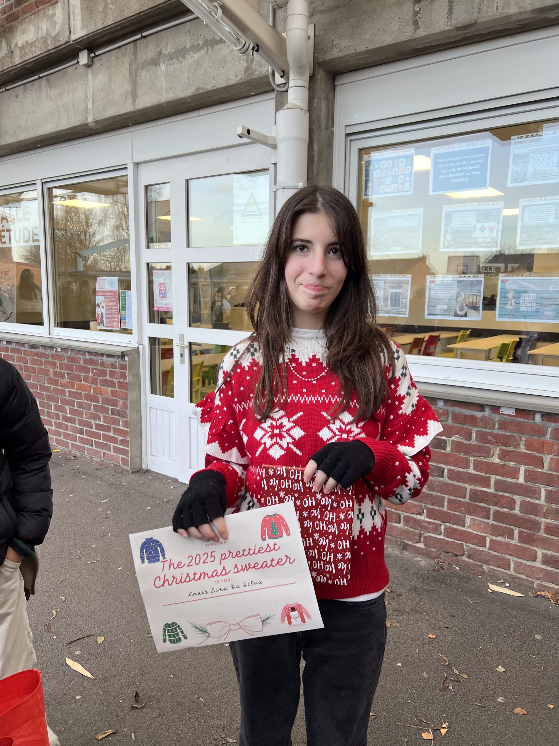 Prix du pull le plus beau de Noël : Anaïs Lima Da Silva, pour son élégance festive impeccable.