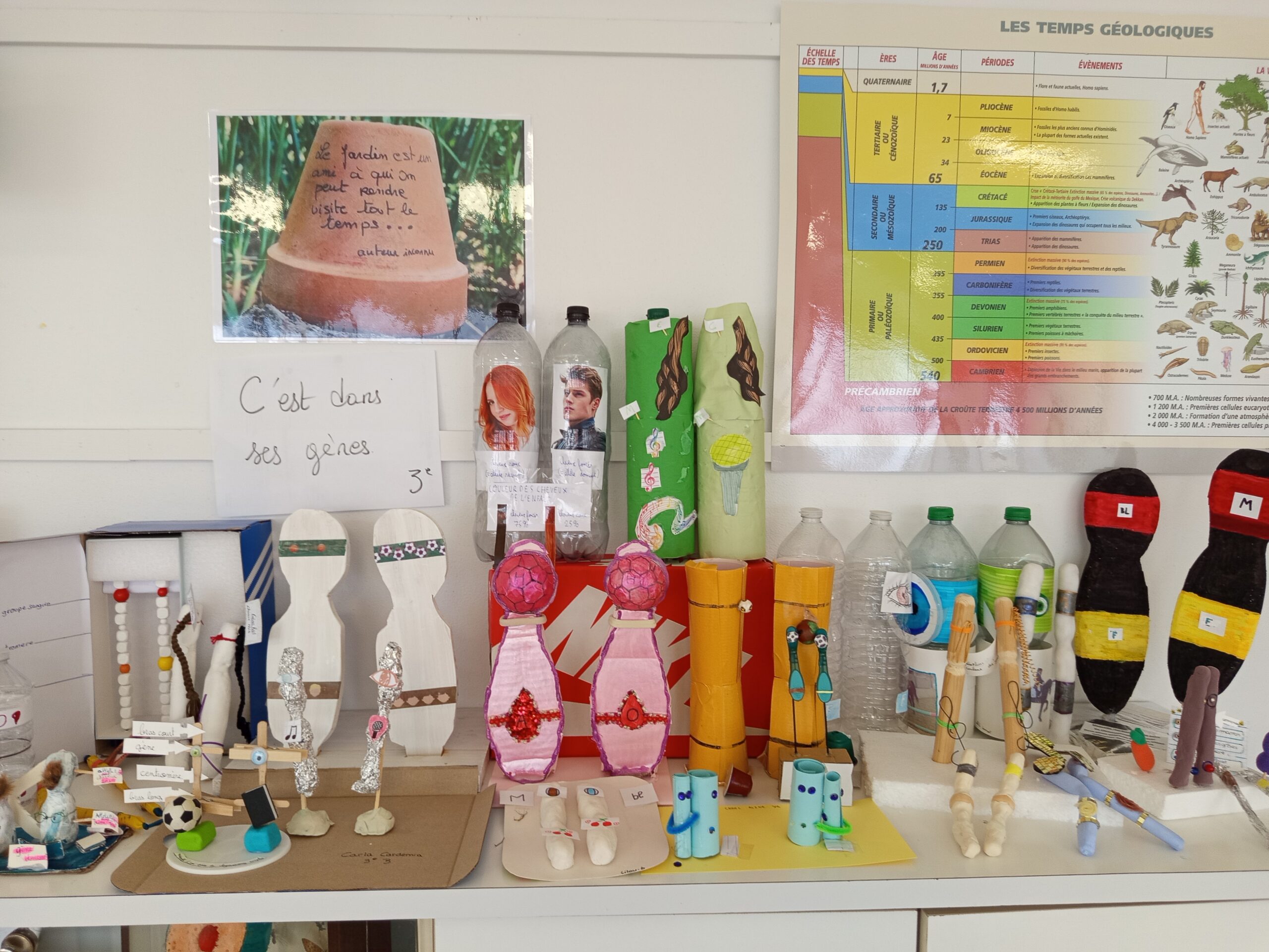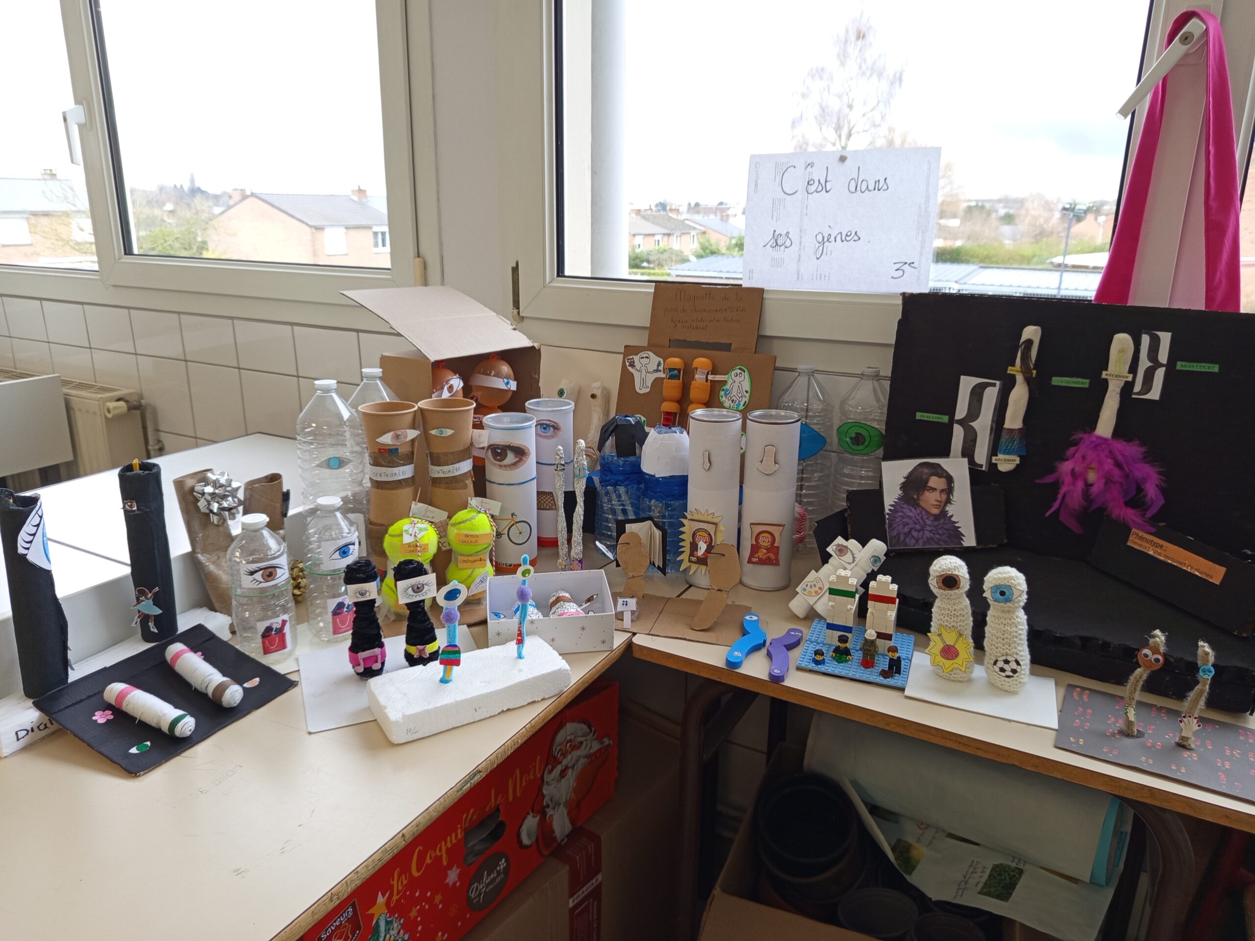 Accueil Actualités SVT 3ème SVT 3ème Les 3èmes A, B et C ont réalisé des maquettes de chromosomes pour pouvoir utiliser le vocabulaire de génétique. Un exercice qui a dévoilé des talents.