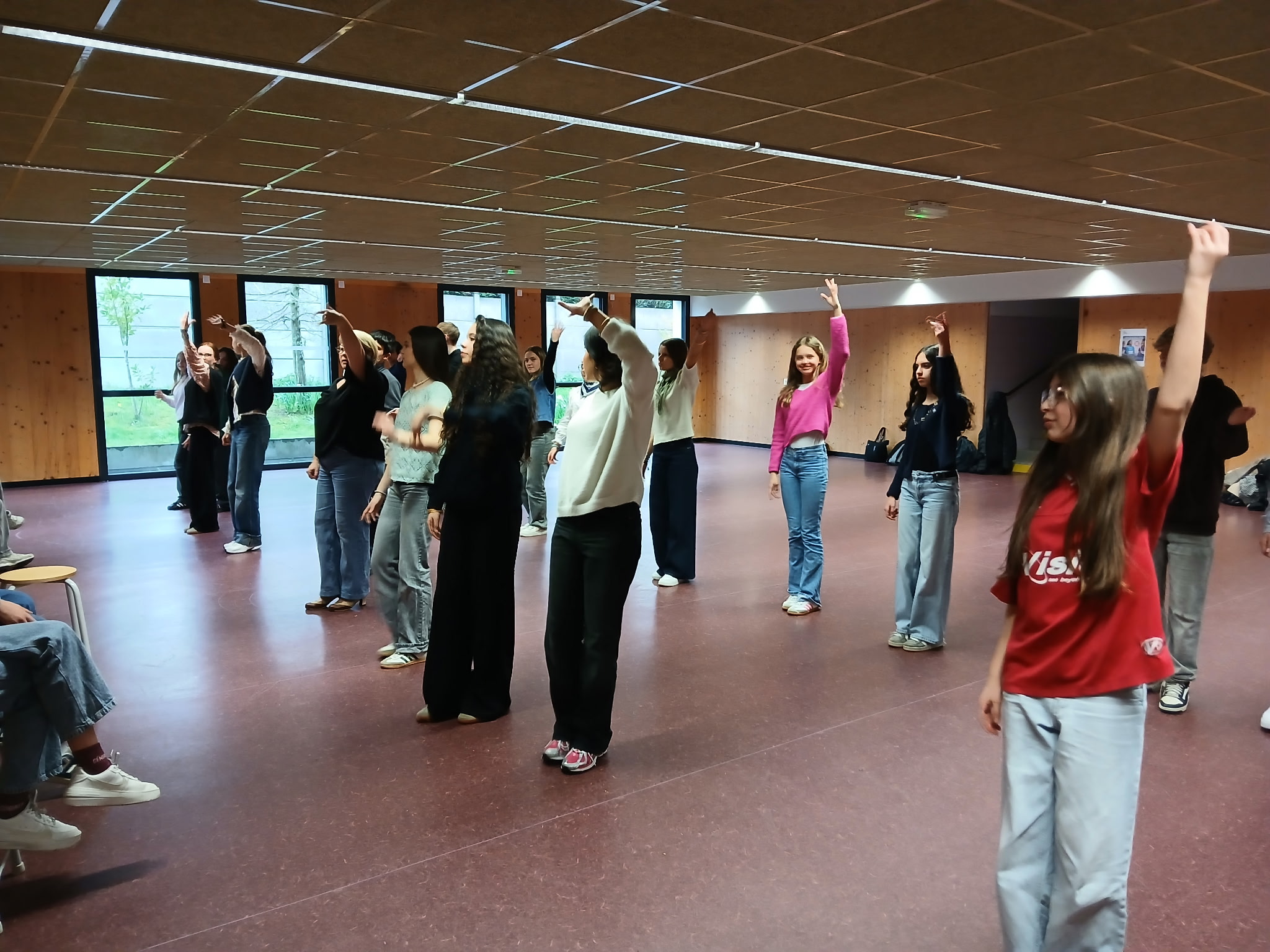 Les élèves de 4° bi-langue sont devenus pendant deux heures « bailaores » et « bailaoras » et ont dansé avec beaucoup de sérieux une « sevillana », danse festive des ferias andalouses, qu’ils avaient apprise avec Frédérique M. professeure de danse flamenca.
